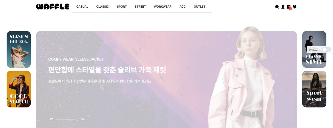 - · 로고, 메뉴등은 편집모드를 통해 설정할 수 있습니다.